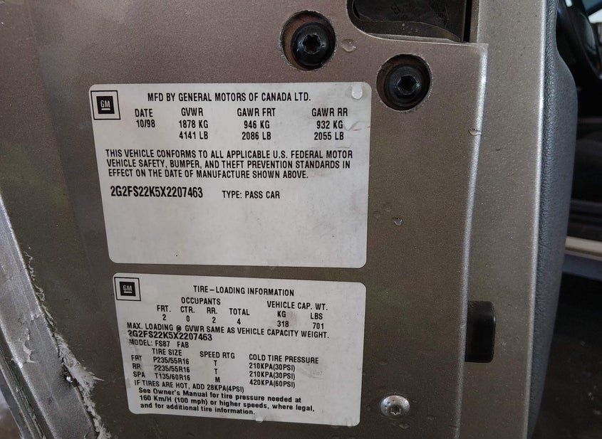- VIN: 2G2FS22K5X2207463
