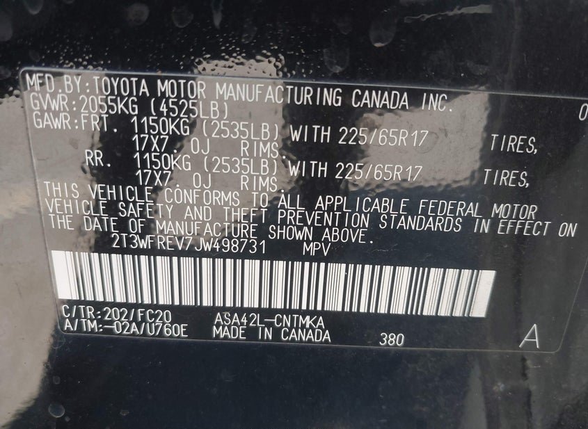 - VIN: 2T3WFREV7JW498731