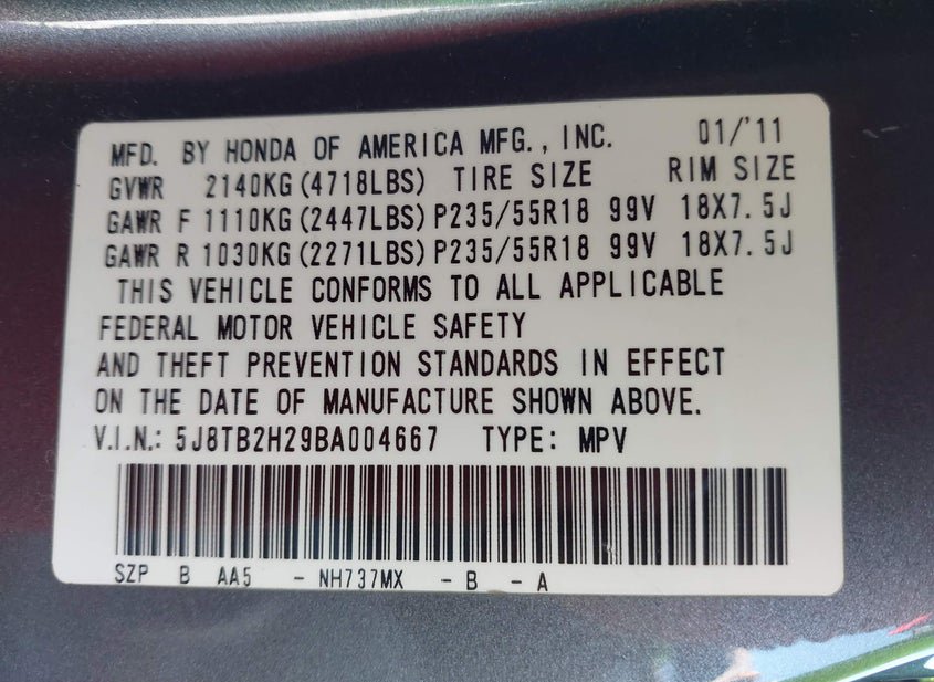 - VIN: 5J8TB2H29BA004667