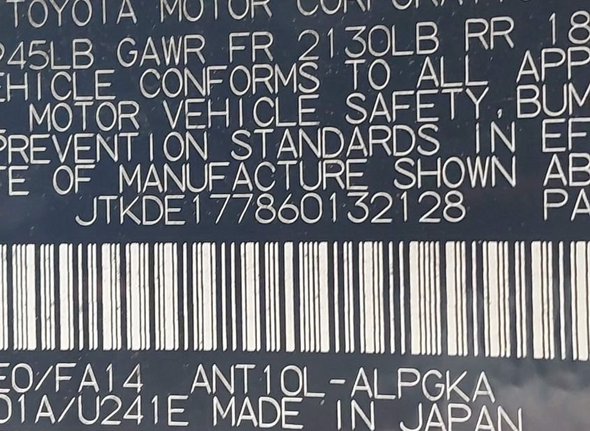 - VIN: JTKDE177860132128