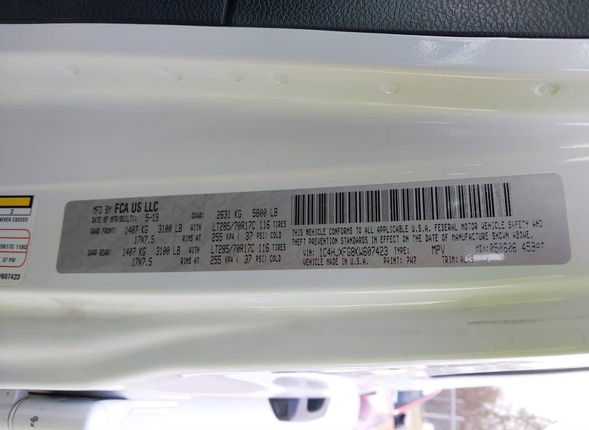 - VIN: 1C4HJXFG8KW607423