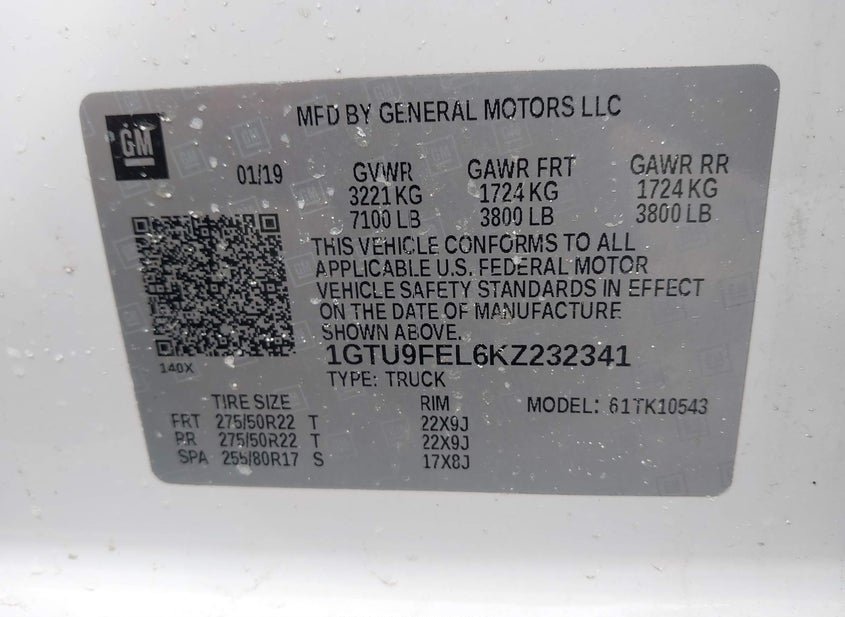 - VIN: 1GTU9FEL6KZ232341