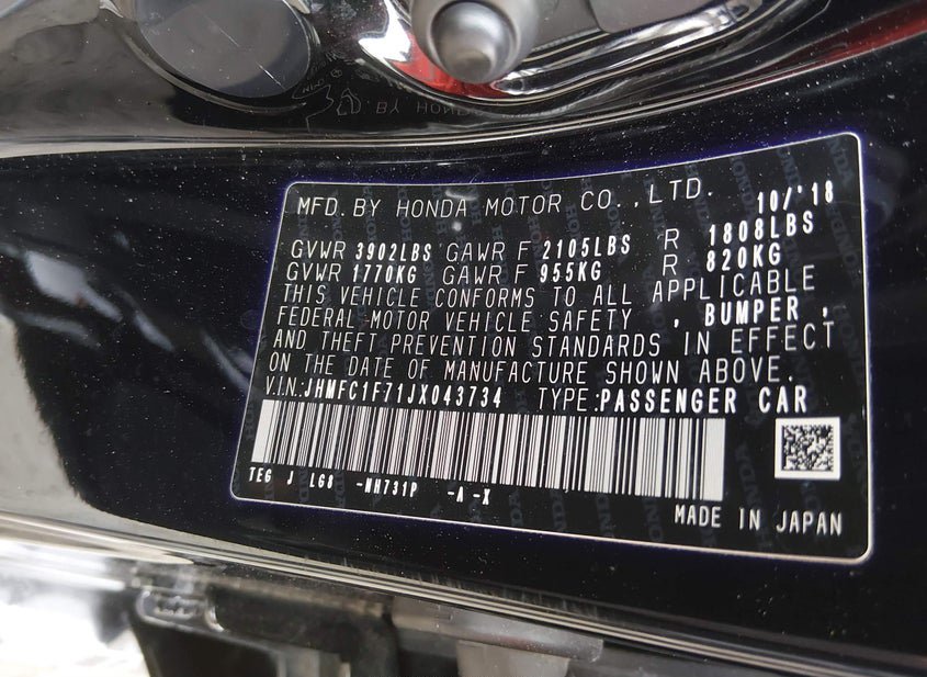 - VIN: JHMFC1F71JX043734