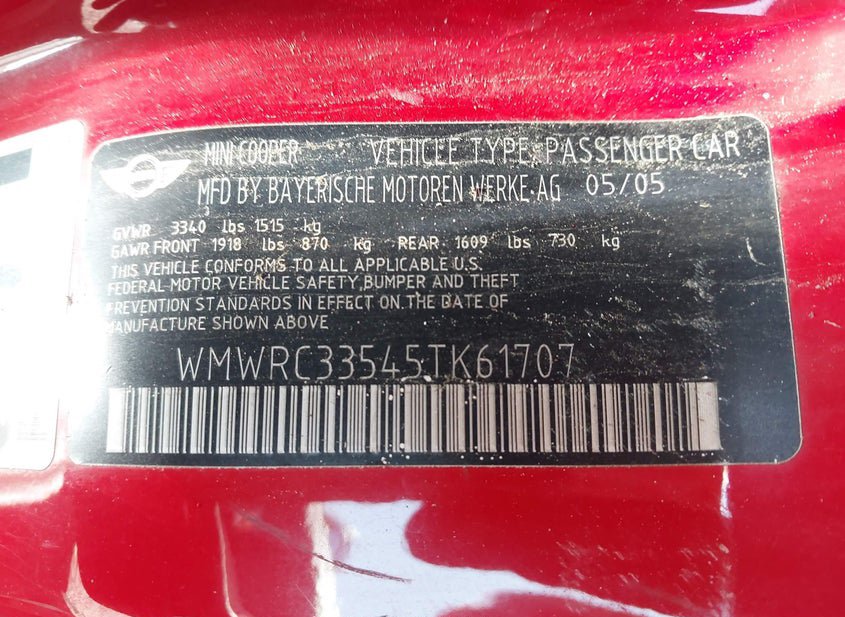 - VIN: WMWRC33545TK61707