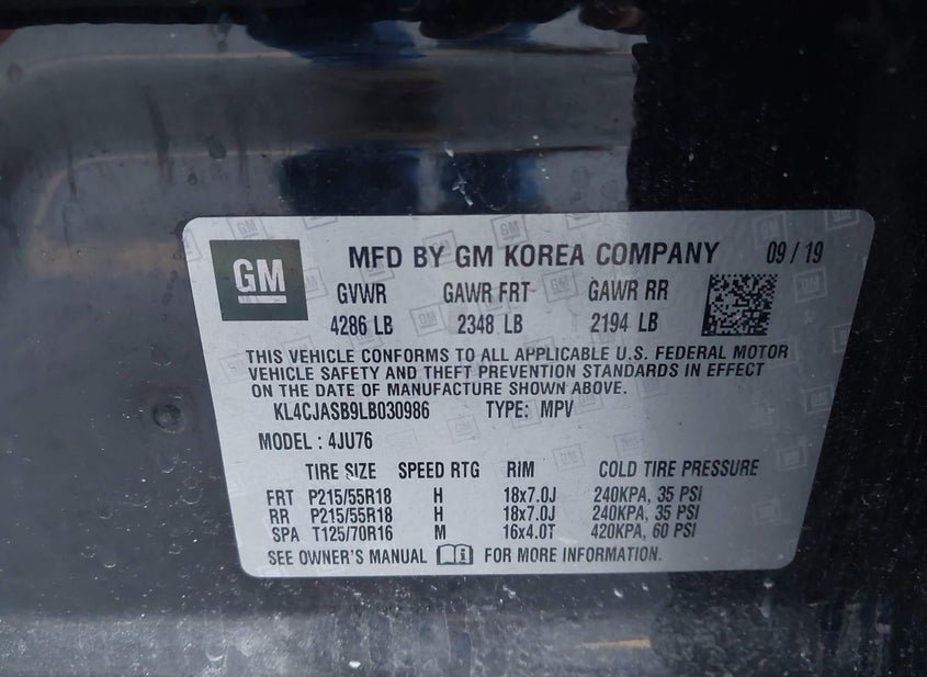 - VIN: KL4CJASB9LB030986