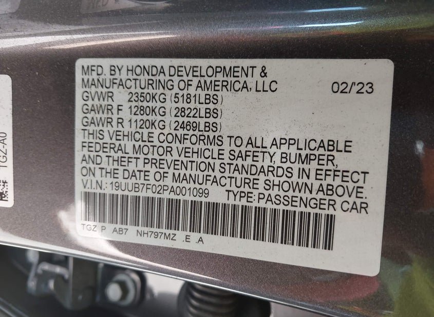 - VIN: 19UUB7F02PA001099