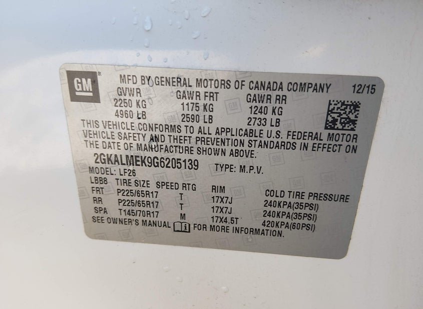 - VIN: 2GKALMEK9G6205139