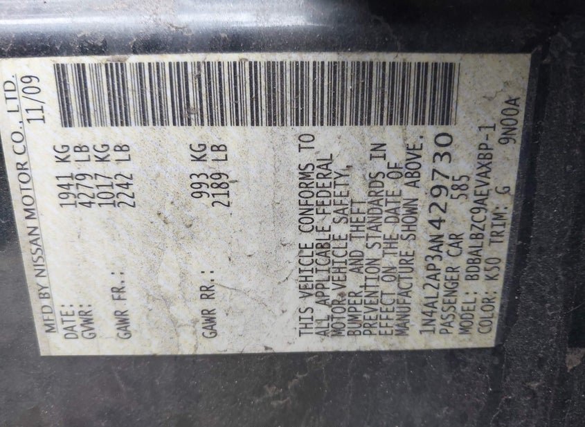 - VIN: 1N4AL2AP3AN429730