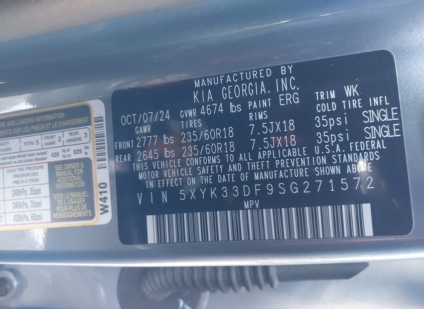 - VIN: 5XYK33DF9SG271572