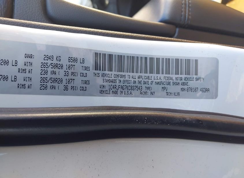 - VIN: 1C4RJFAG7KC837543