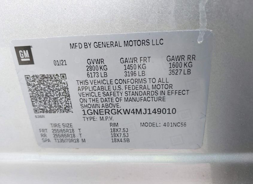 - VIN: 1GNERGKW4MJ149010
