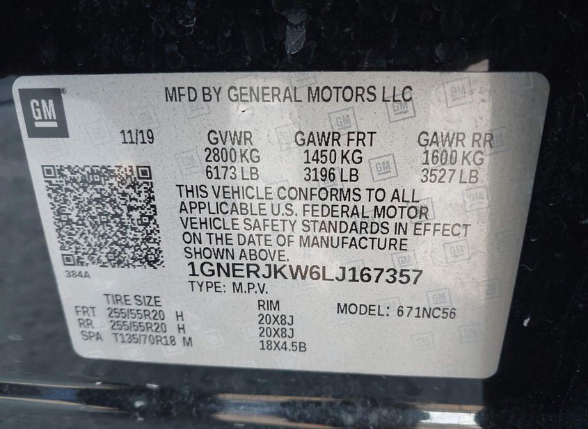 - VIN: 1GNERJKW6LJ167357