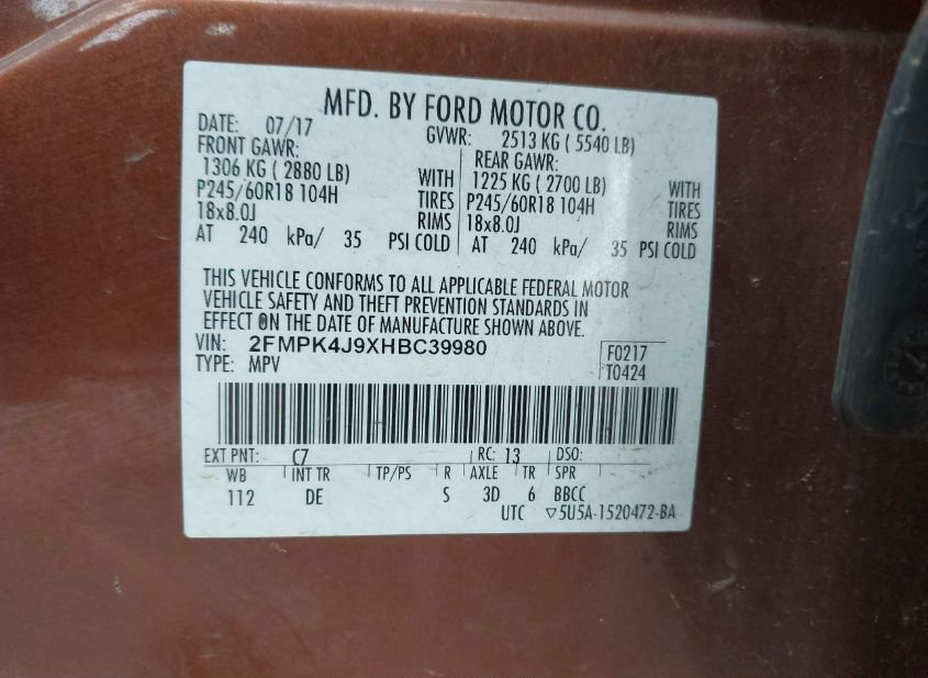 - VIN: 2FMPK4J9XHBC39980