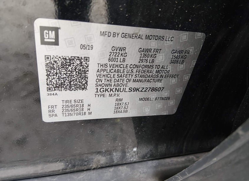 - VIN: 1GKKNULS9KZ278607