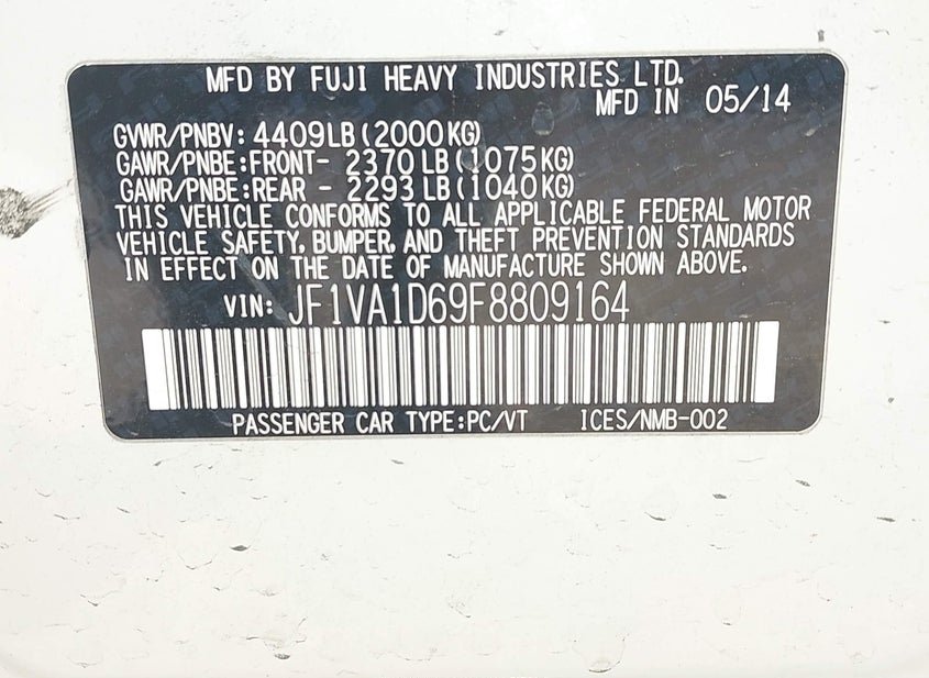 - VIN: JF1VA1D69F8809164