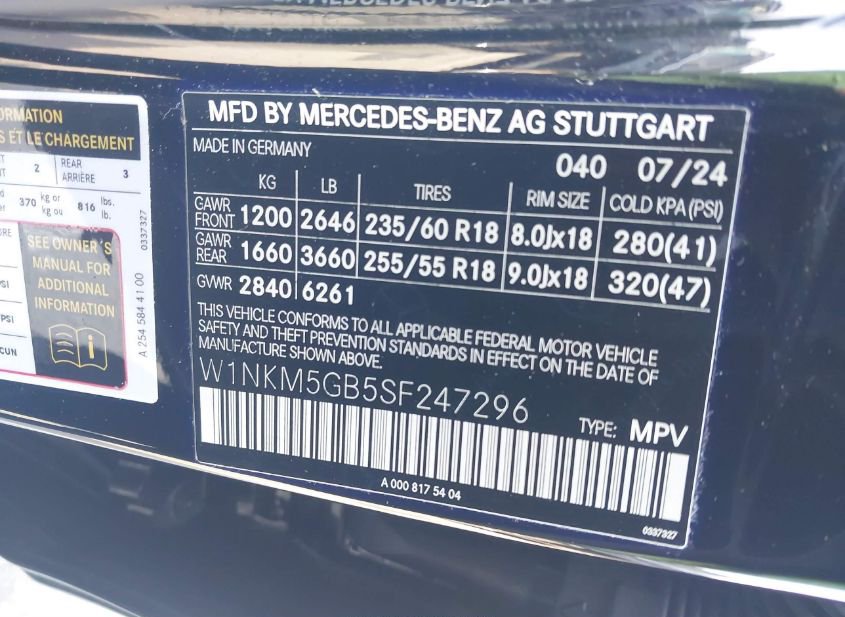 - VIN: W1NKM5GB5SF247296