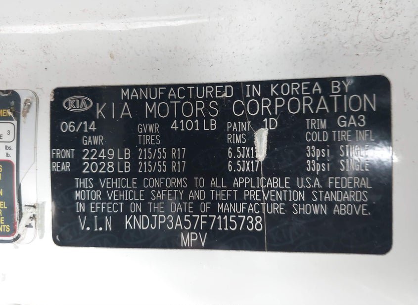 - VIN: KNDJP3A57F7115738