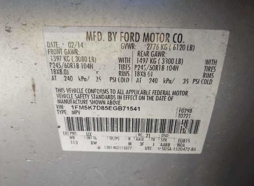 - VIN: 1FM5K7D85EGB71541