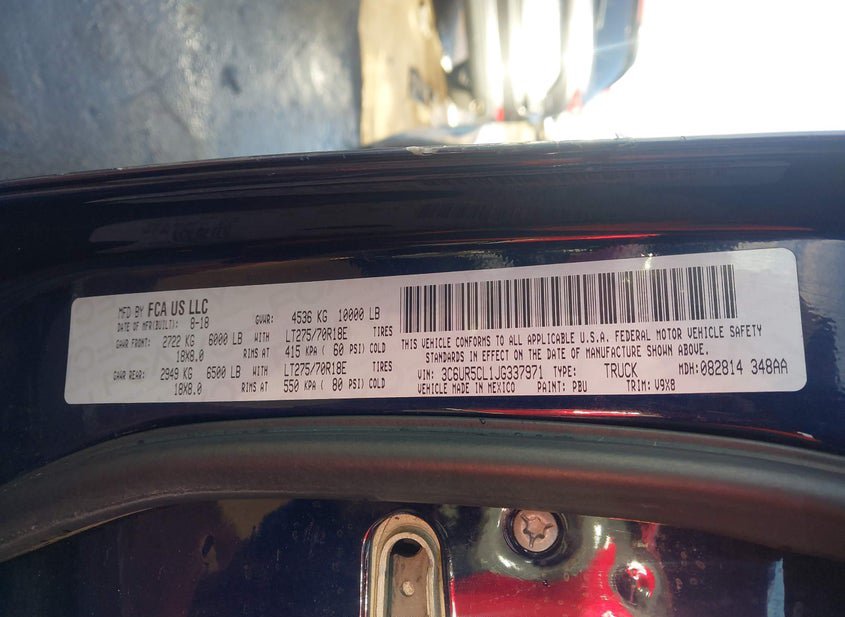 - VIN: 3C6UR5CL1JG337971