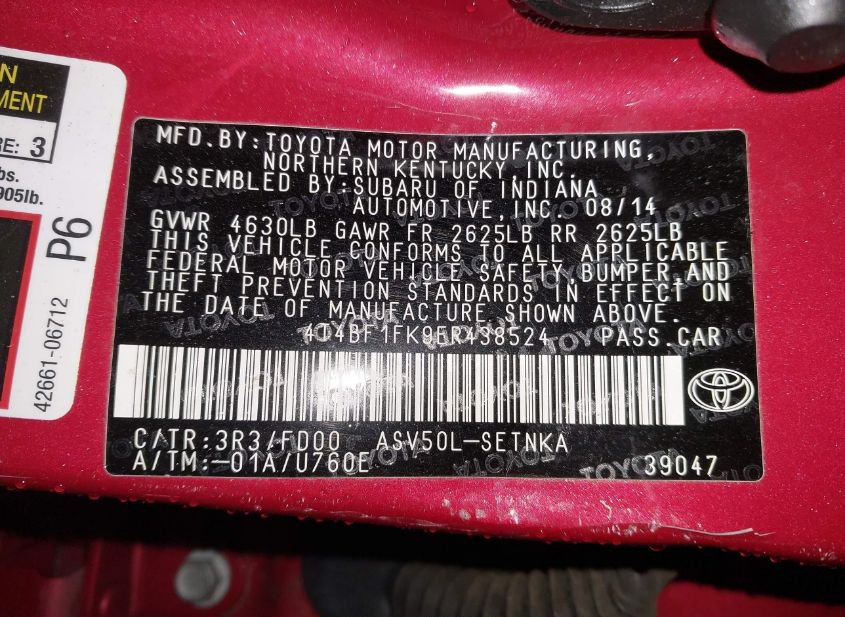 - VIN: 4T4BF1FK9ER438524