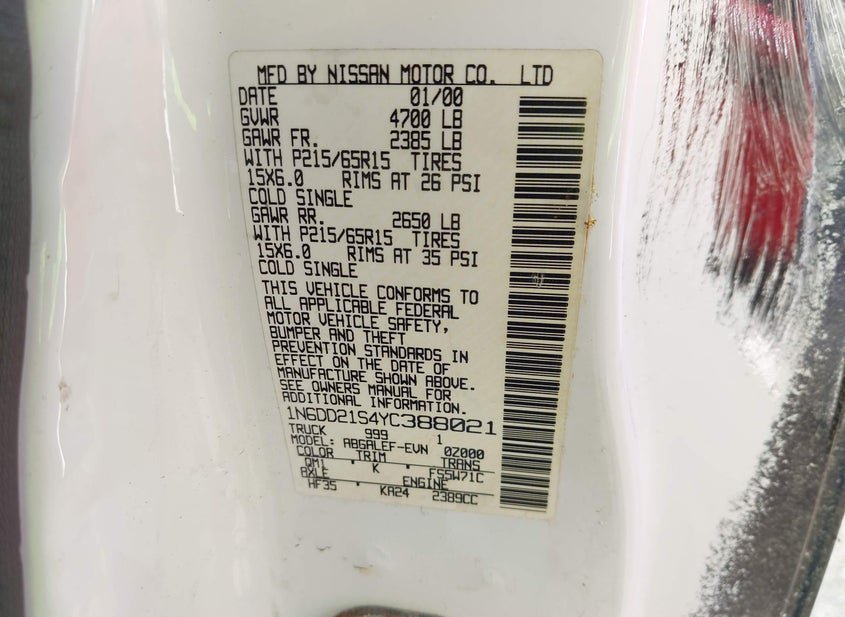 - VIN: 1N6DD21S4YC388021