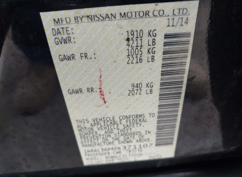 - VIN: 1N4AL3AP4FN371107