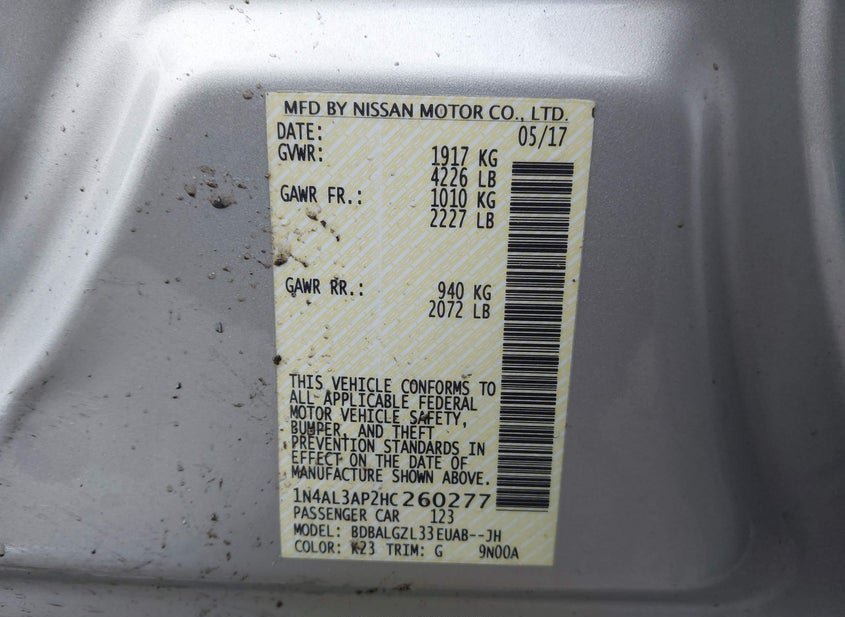 - VIN: 1N4AL3AP2HC260277