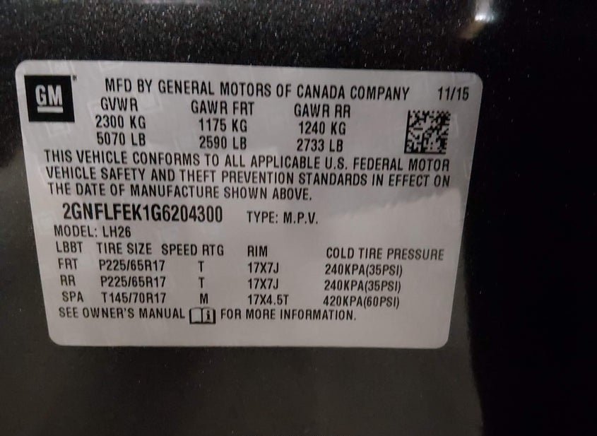 - VIN: 2GNFLFEK1G6204300