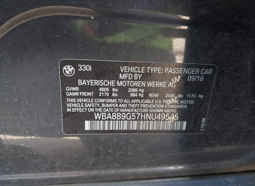 - VIN: WBA8B9G57HNU49545