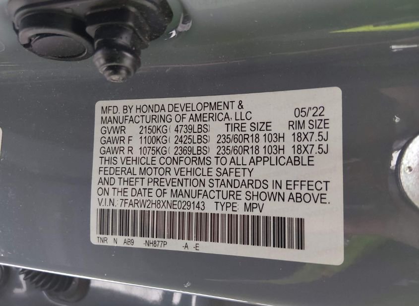 - Название лота: 2022 HONDA CR-V AWD EX-L