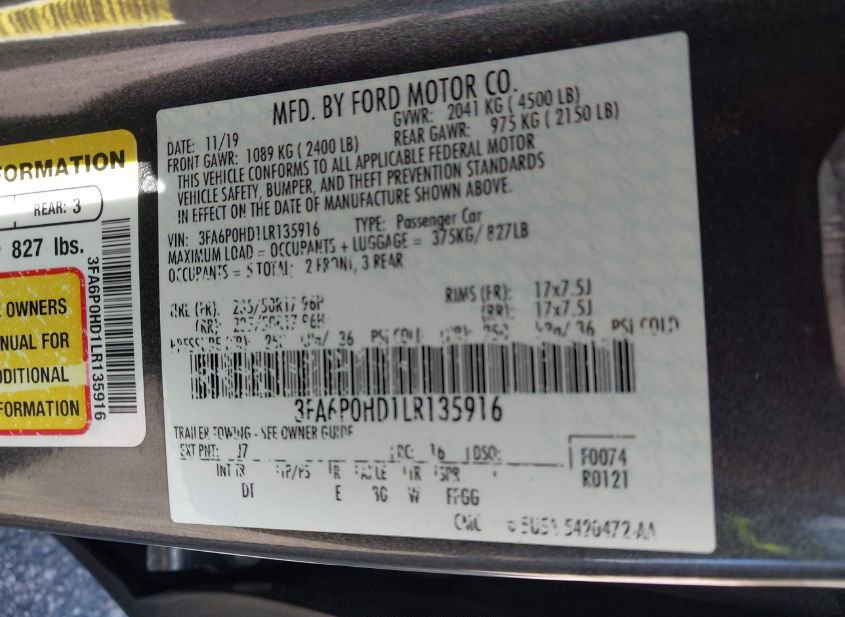 - VIN: 3FA6P0HD1LR135916