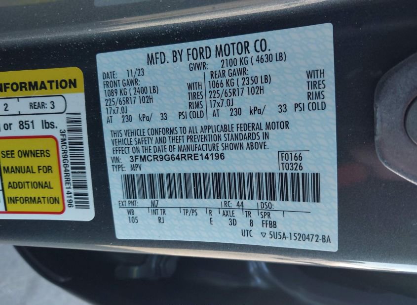 - VIN: 3FMCR9G64RRE14196