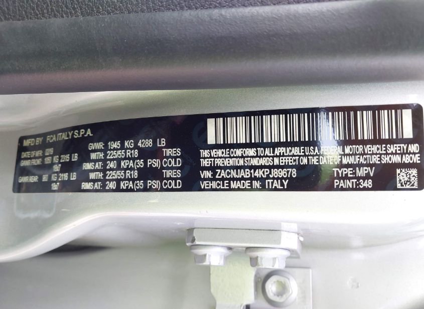 - VIN: ZACNJAB14KPJ89678