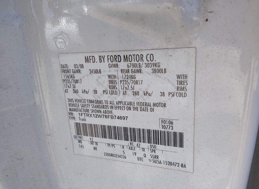 - VIN: 1FTRX12W78FB74697