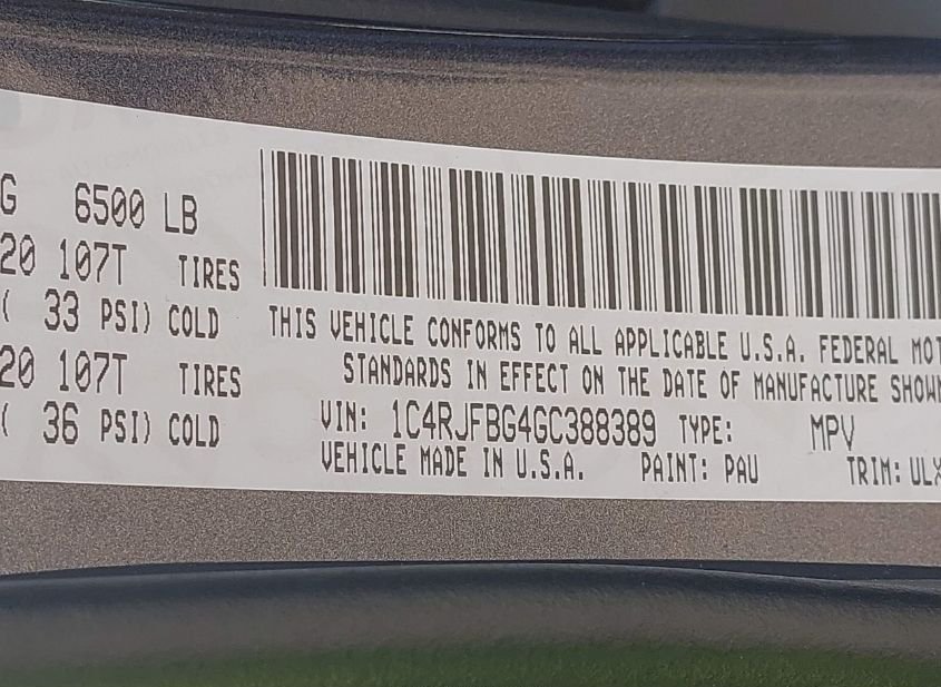 - VIN: 1C4RJFBG4GC388389