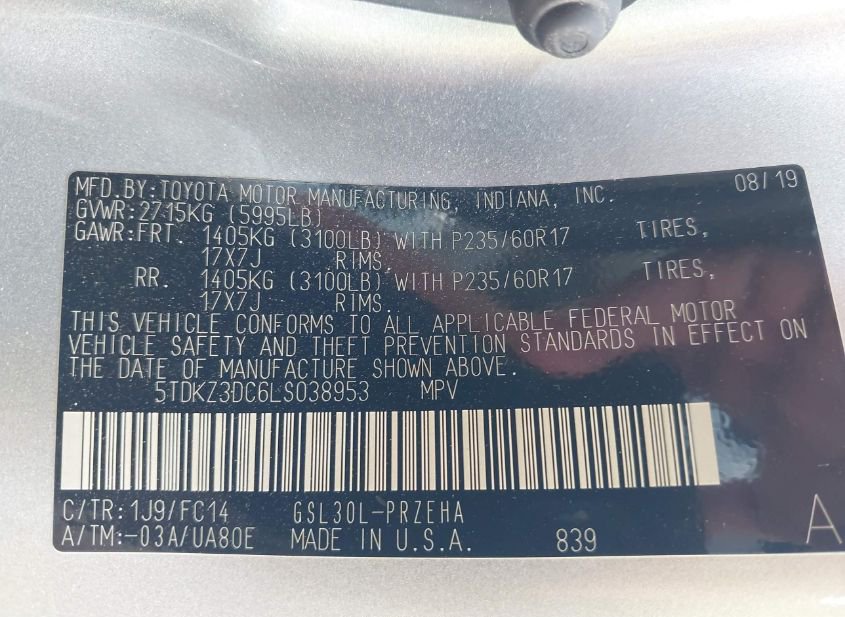 - VIN: 5TDKZ3DC6LS038953