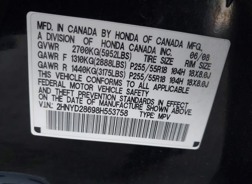 - VIN: 2HNYD28698H553758