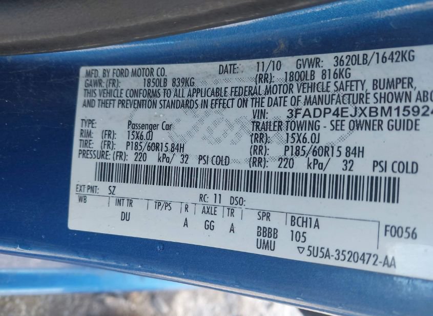 - VIN: 3FADP4EJXBM159247