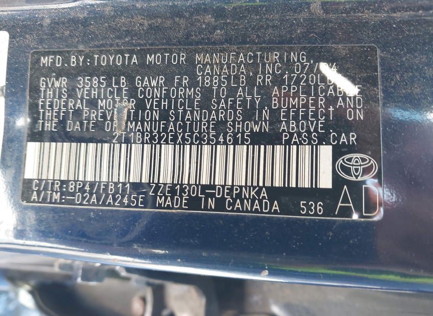 - VIN: 2T1BR32EX5C354615