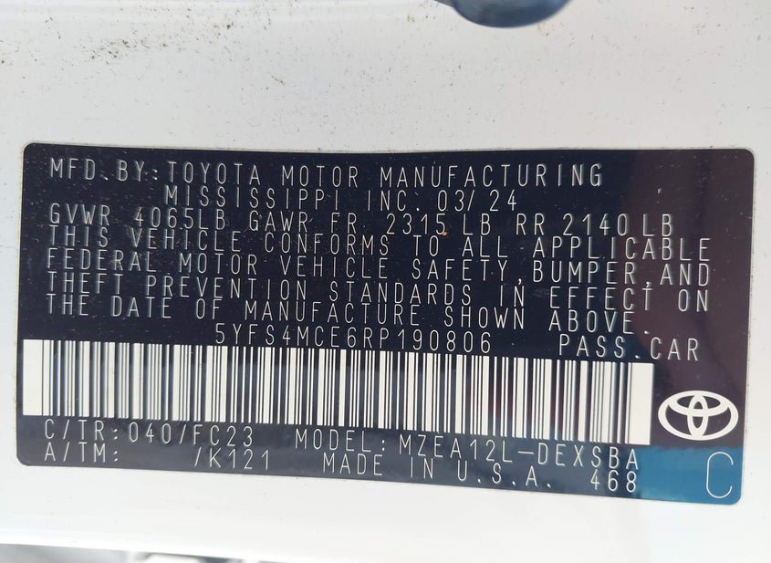 - VIN: 5YFS4MCE6RP190806