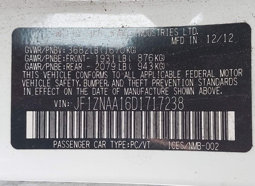 - VIN: JF1ZNAA16D1717238