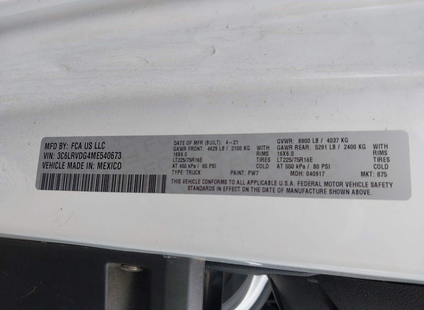 - VIN: 3C6LRVDG4ME540673