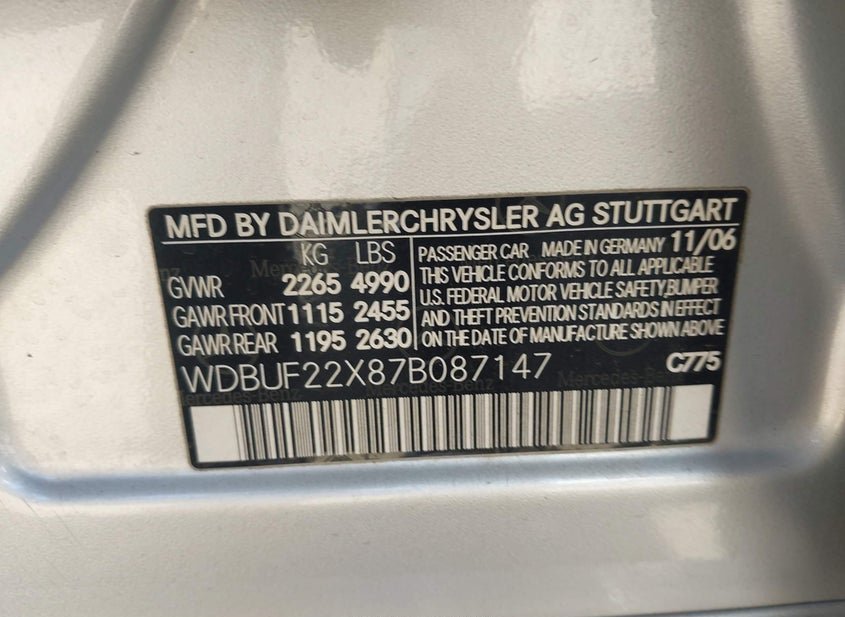 - VIN: WDBUF22X87B087147