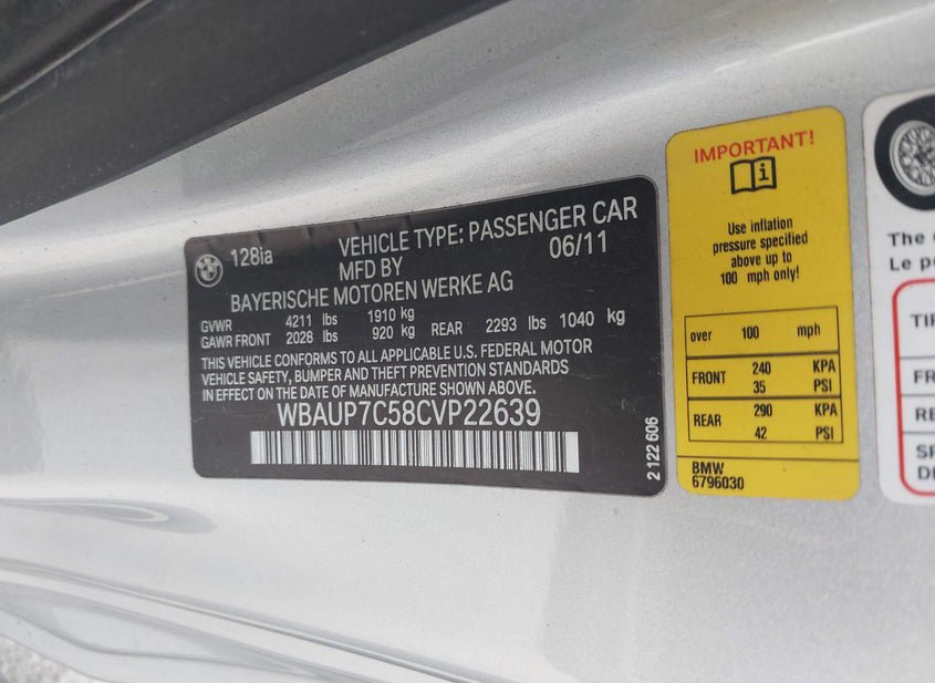 - VIN: WBAUP7C58CVP22639