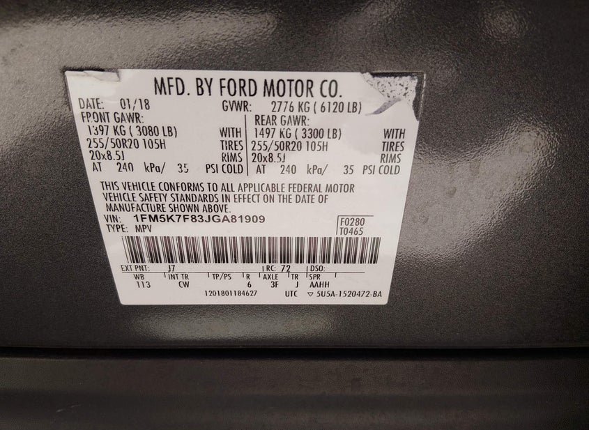- VIN: 1FM5K7F83JGA81909