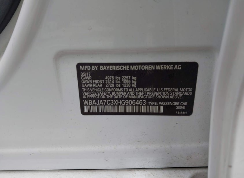 - VIN: WBAJA7C3XHG906463