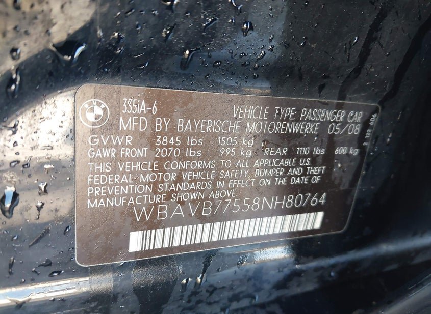 - Название лота: 2008 BMW 335I