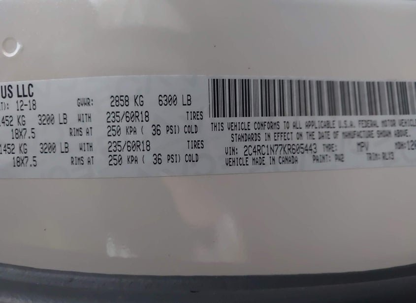- VIN: 2C4RC1N77KR605443