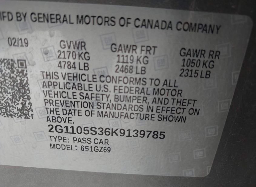 - VIN: 2G1105S36K9139785