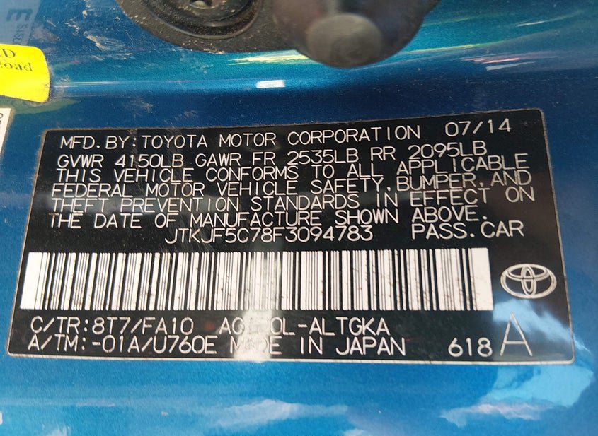 - VIN: JTKJF5C78F3094783